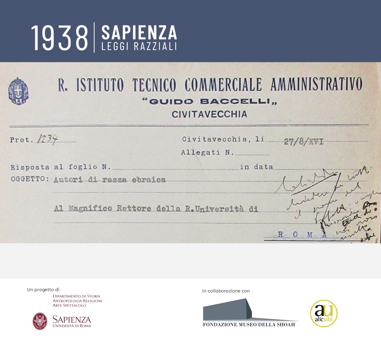 Il progetto intende censire, selezionare e rendere consultabile la documentazione relativa alla politica antisemita e all’espulsione degli ebrei dall’Università di Roma in conseguenza delle leggi razziali del 1938